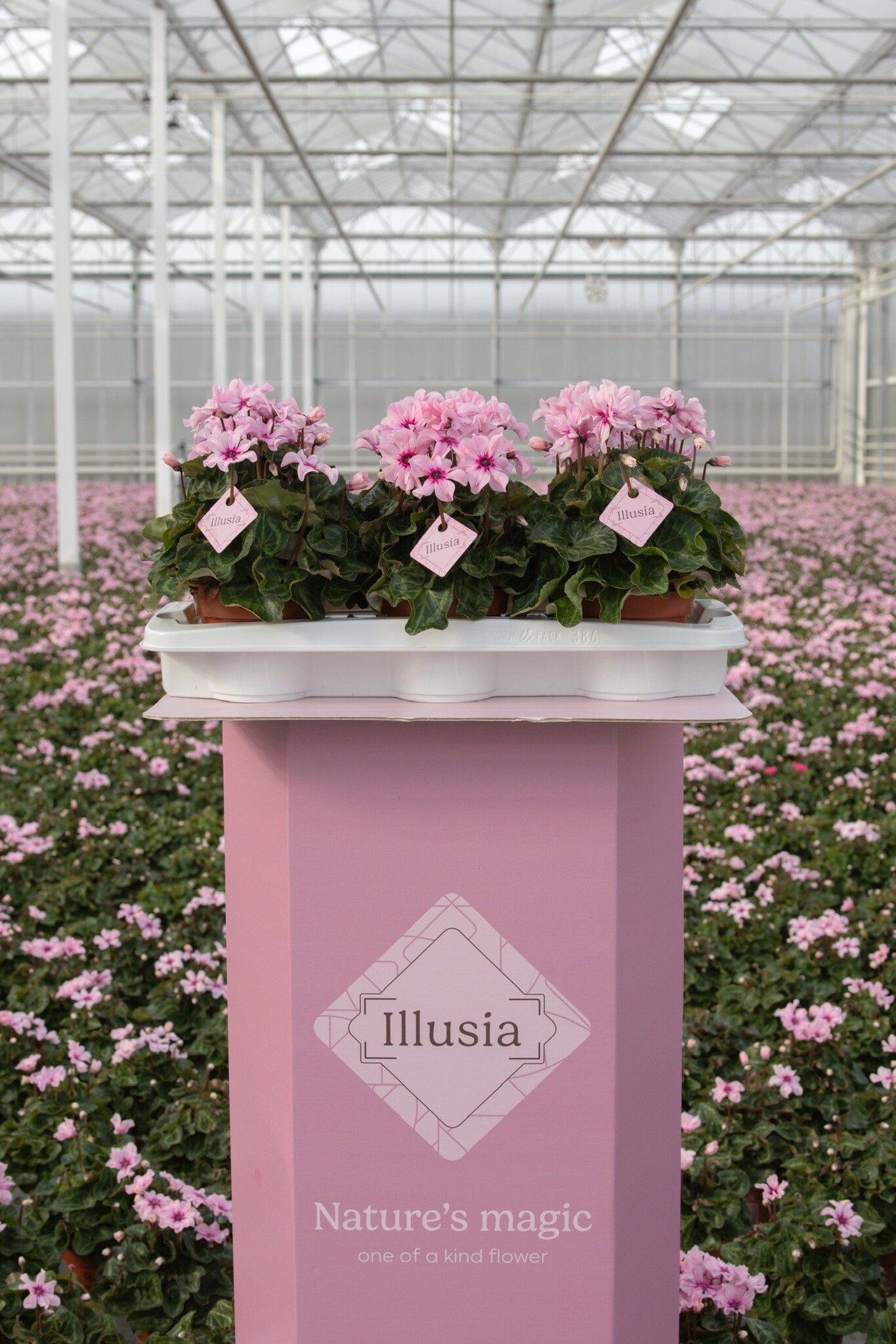 De Illusia is een cyclaam die u nog zelden gezien zult hebben. Het is een van de nieuwst veredelde Cyclamen van dit moment. De unieke bloemvorm maakt de Illusia tot een zeer opvallende en aantrekkelijke plant. Het lijkt wel alsof de bloem je aankijkt. De mooie details, zoals het baardje in de bloem, maken Illusia een lust voor het oog.